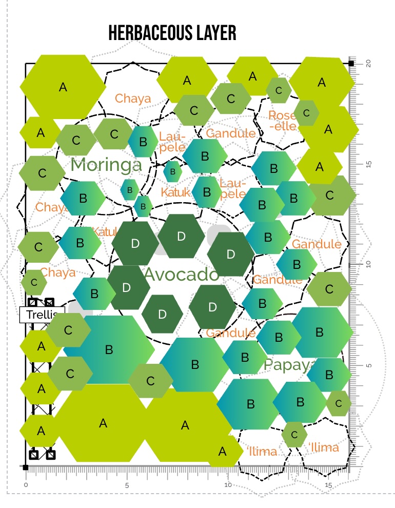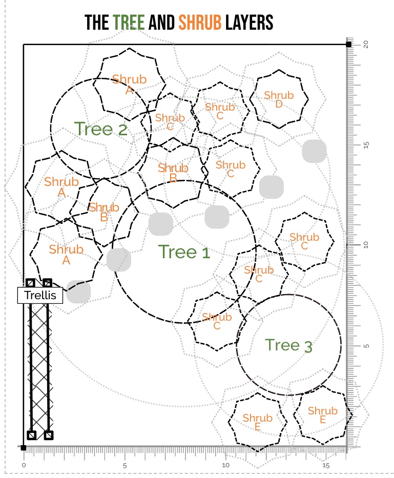 - Figure 1. A conceptual layered diagram illustrating vertical plant relationships (from a native plant design reference; our systems include food bearing plants in much denser configurations, but we are looking for a similar 3-D image to help readers understand maps and concepts)